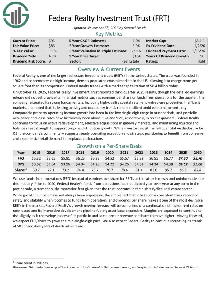 On October 31, 2025, Federal Realty Funding Belief reported third-quarter 2025 outcomes, although the detailed earnings launch didn’t but present full monetary metrics reminiscent of earnings per share or funds from operations for the quarter.