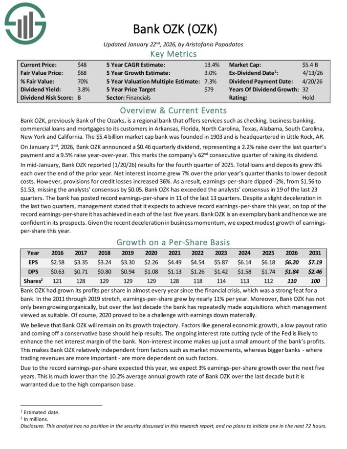 On January 2nd, 2026, Financial institution OZK introduced a $0.46 quarterly dividend, representing a 2.2% elevate during the last quarter’s cost and a 9.5% elevate year-over-year. This marked the corporate’s 62nd consecutive quarter of elevating its dividend.