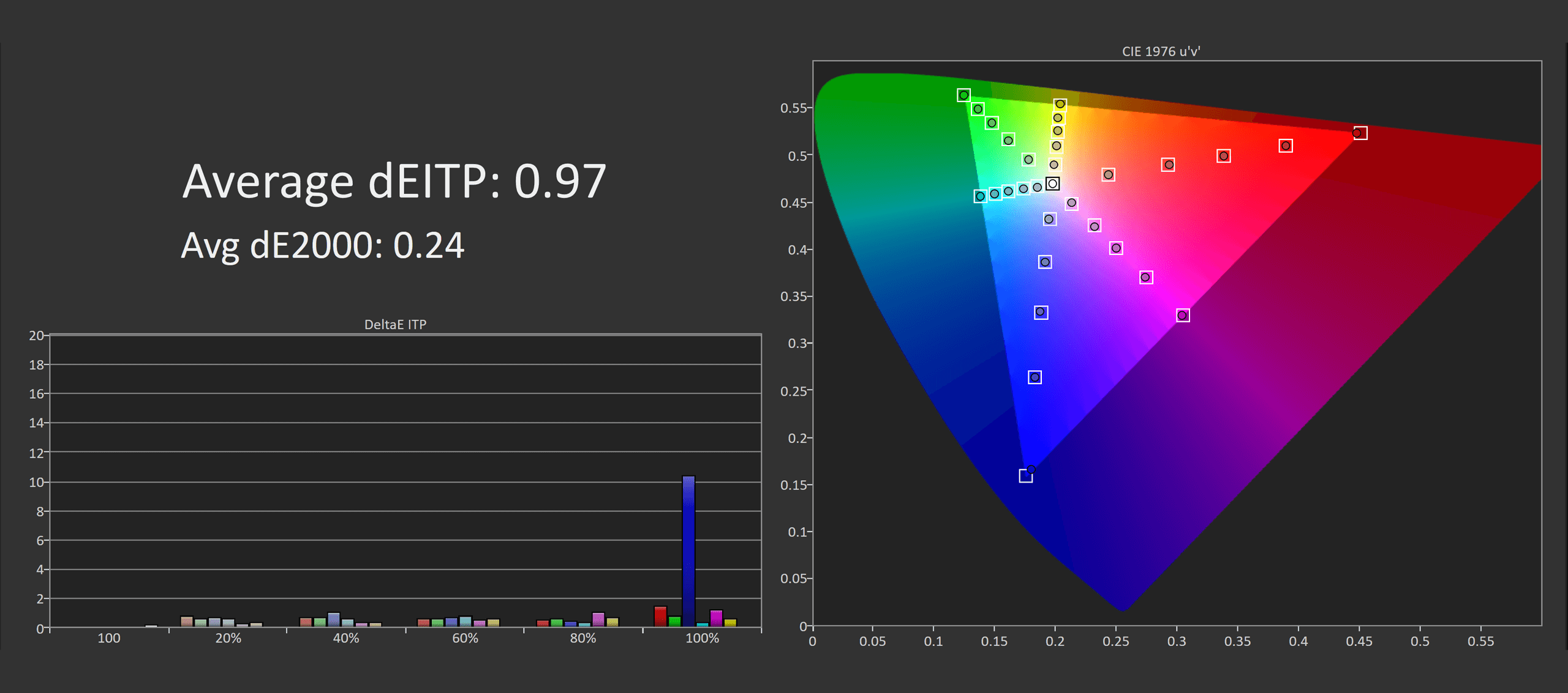 For colour high quality you could be shocked to find this panel is broad gamut, sporting 95% protection of DCI-P3 and an total 70% protection of Rec. 2020. This is not the widest gamut, it is just about the minimal form of protection wanted for a correct broad gamut expertise, but it surely does present one the place the XL2566K and a number of other different 1080p displays don’t.